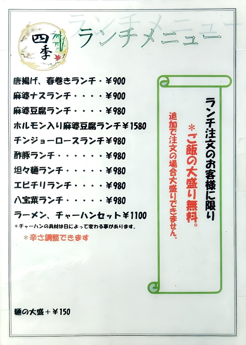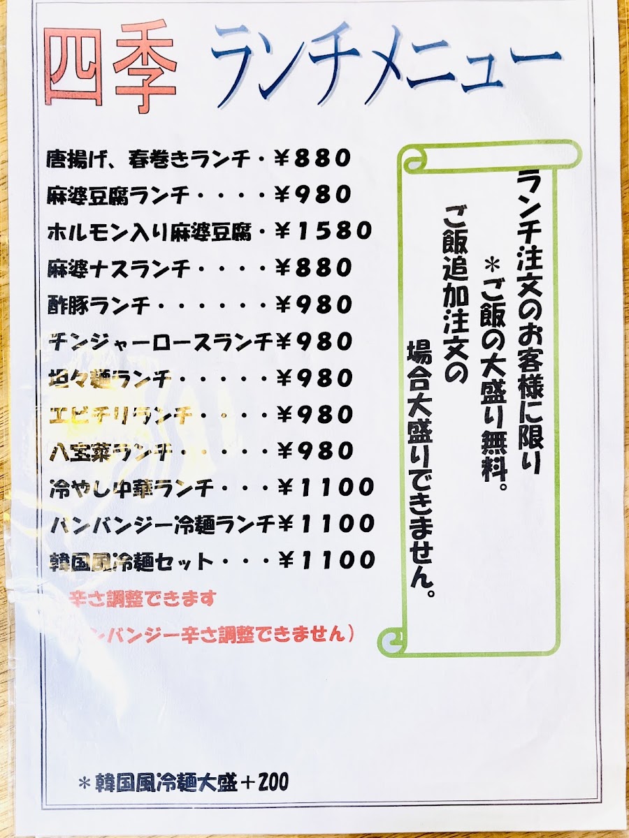 Each dish on the menu is a reflection of the restaurant's commitment to offering an authentic and flavorful dining experience, with options that range from rich and spicy to light and refreshing. Whether you're in the mood for noodles, fried rice, or a savory set meal, Shiki Hiroshima has something to satisfy every palate.