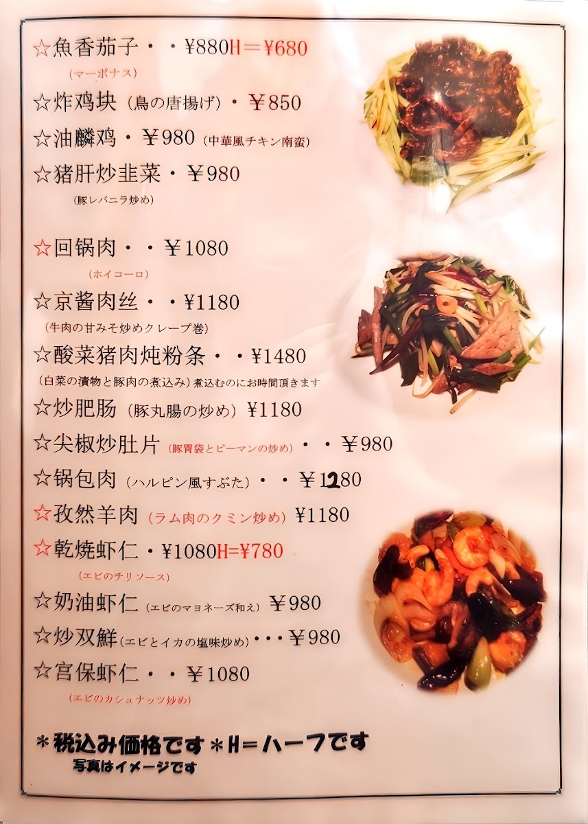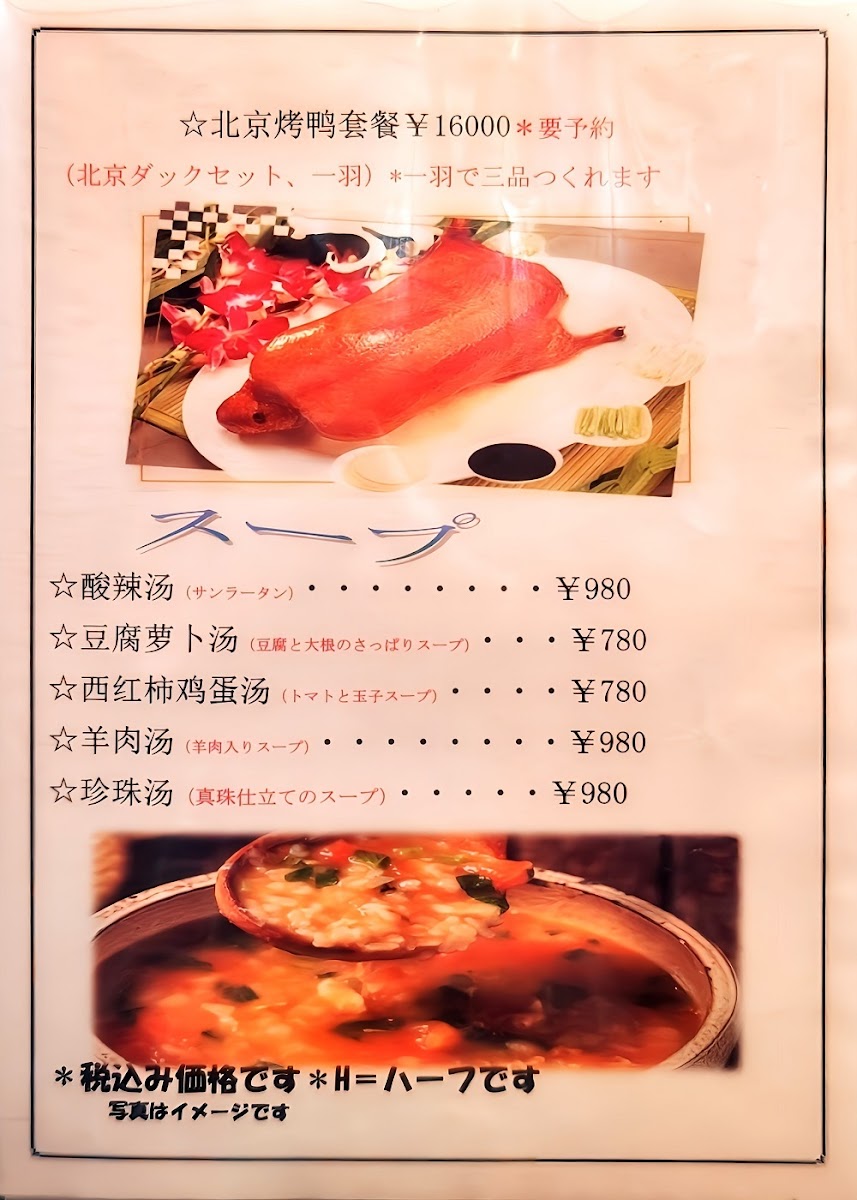 The menu at Shiki Hiroshima offers a wide array of delectable dishes that showcase a perfect balance of flavors and textures, with some standout items that are a must-try. For those craving a hearty lunch, ホルモン 麻婆 豆腐 ランチ (Horumon Mapo Tofu Lunch) offers a rich, spicy, and savory experience. The 北京ダック (Peking Duck) is a classic, prepared to perfection with crispy skin and tender meat, making it an exquisite choice for anyone looking for a refined, flavorful dish.