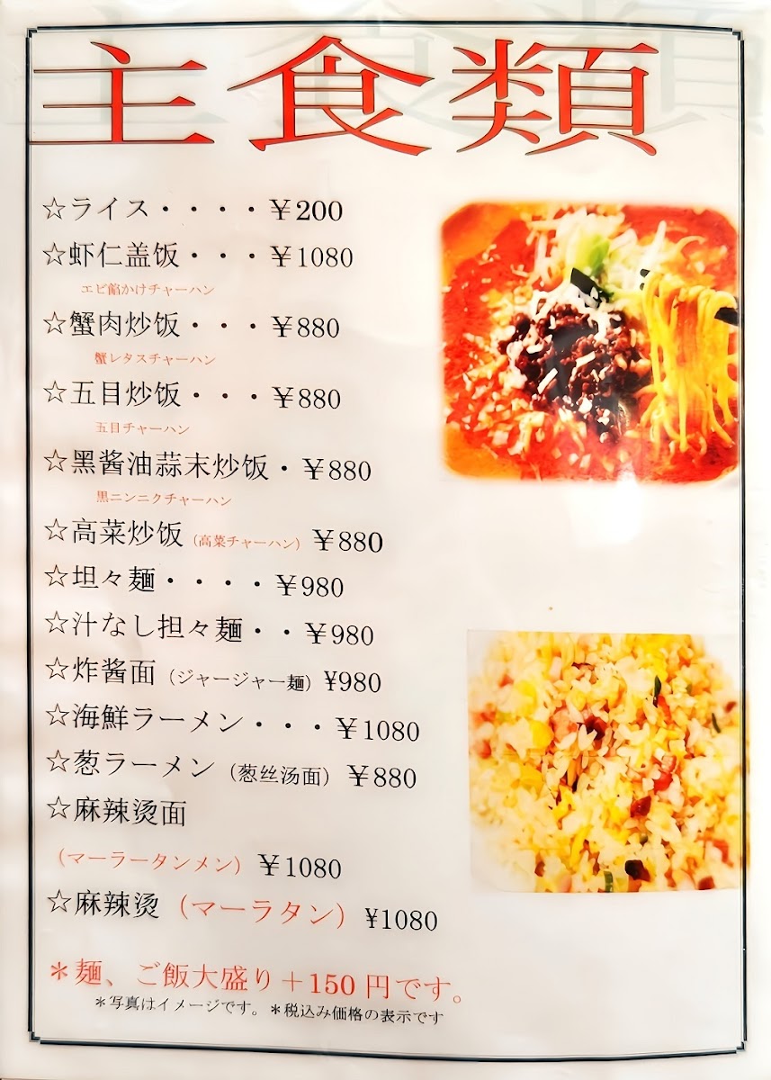 For noodle enthusiasts, 担々麺ランチの担々麺 (Dan Dan Noodles Lunch) and 汁なし担々麺 (Dry Dan Dan Noodles) stand out with their bold, spicy, and nutty flavors, while the ラーメン チャーハンセット (Ramen and Fried Rice Set) offers a comforting, satisfying meal. Seafood lovers will appreciate the delightful エビチリ ランチ (Shrimp in Chili Sauce Lunch), which brings the perfect amount of spice and sweetness.